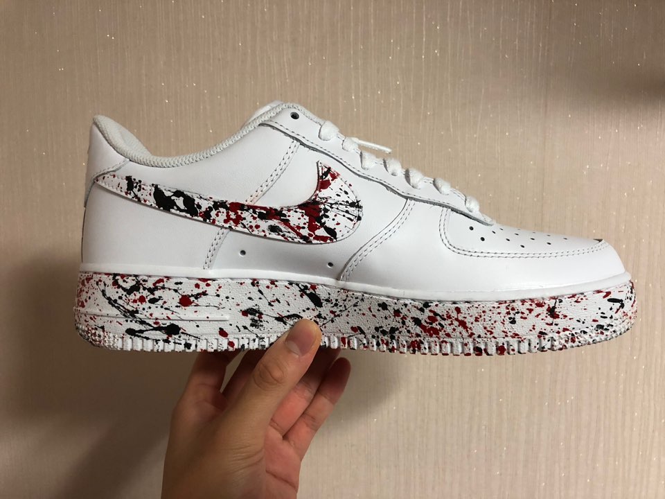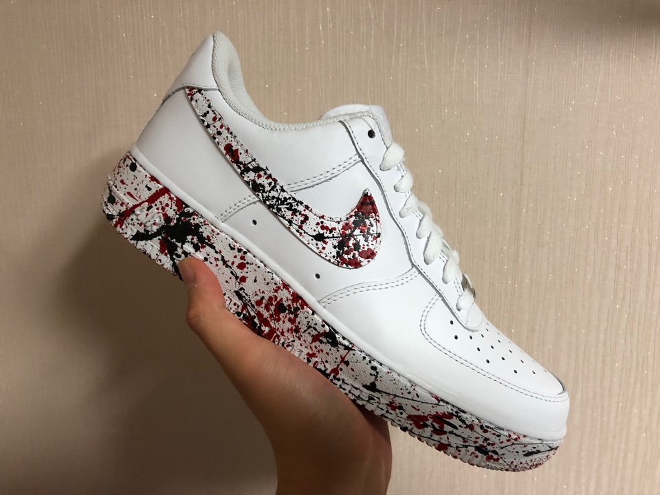 신발 내측면,외측면 스우시와 미드솔 부분만 액션페인팅이 들어간 커스텀입니다.컬러는 질리지않는 진~한 레드와, 블랙 두가지를 사용하였습니다.