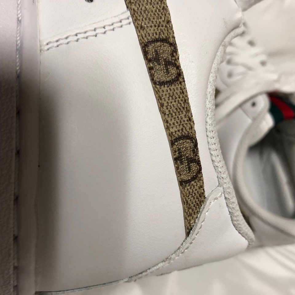 앞코와 바디 내측면과 외측면에 있는 기존의 스우시(나이키로고모양)을 제거하고, 원단을 이용하여스우시(나이키로고모양)를 새로 만들어 바디 내측면과 외측면에 본딩 후 재봉하였으며, 혀부분에 삼선밴드를 추가 작업을 진행하였습니다.