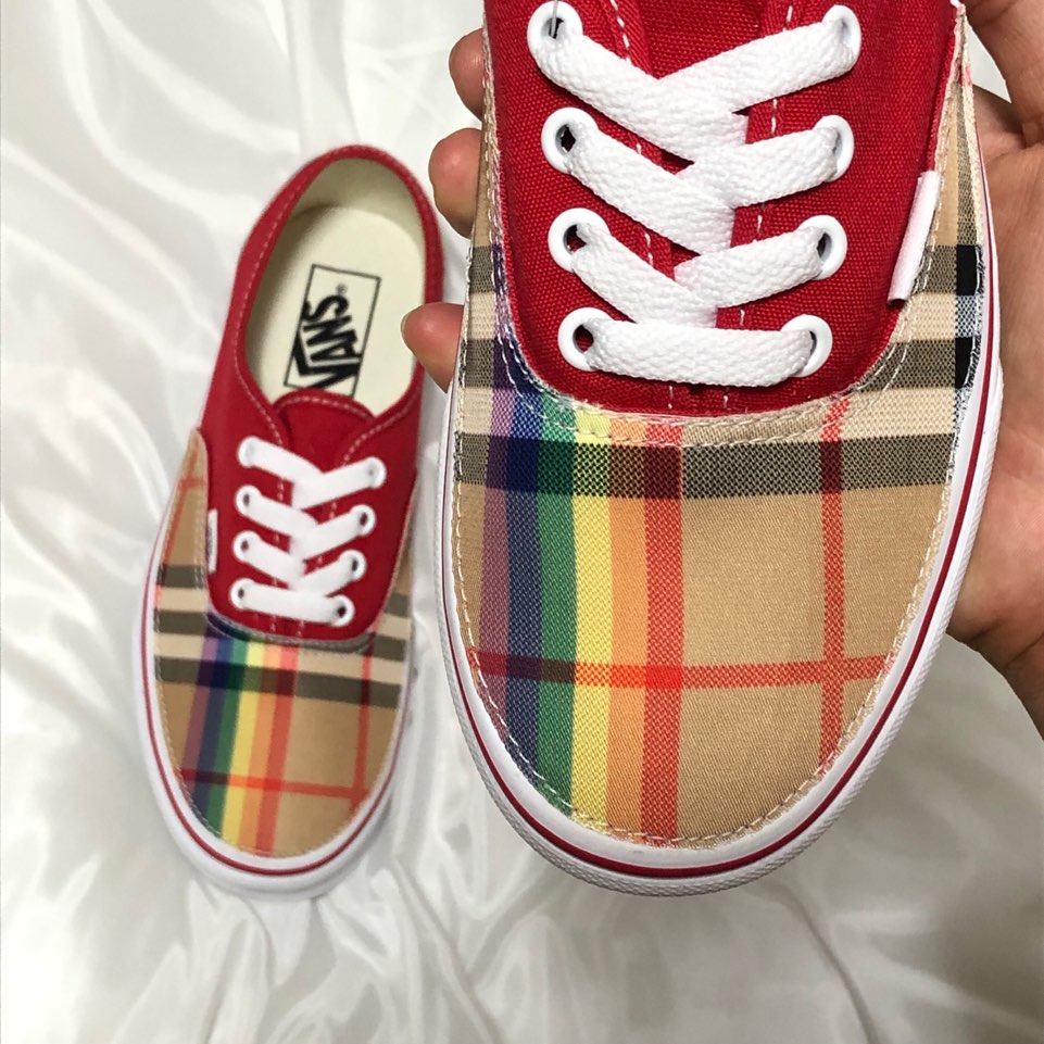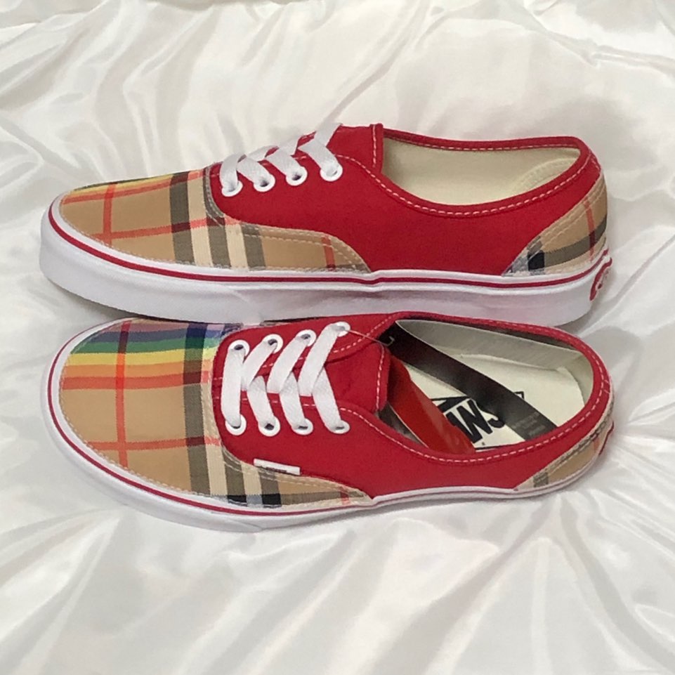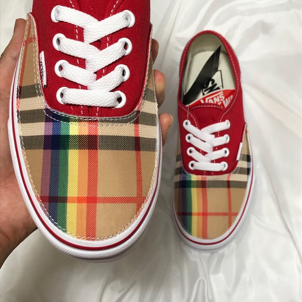 반스 어센틱 레드 레인보우 체크 커스텀 (14)