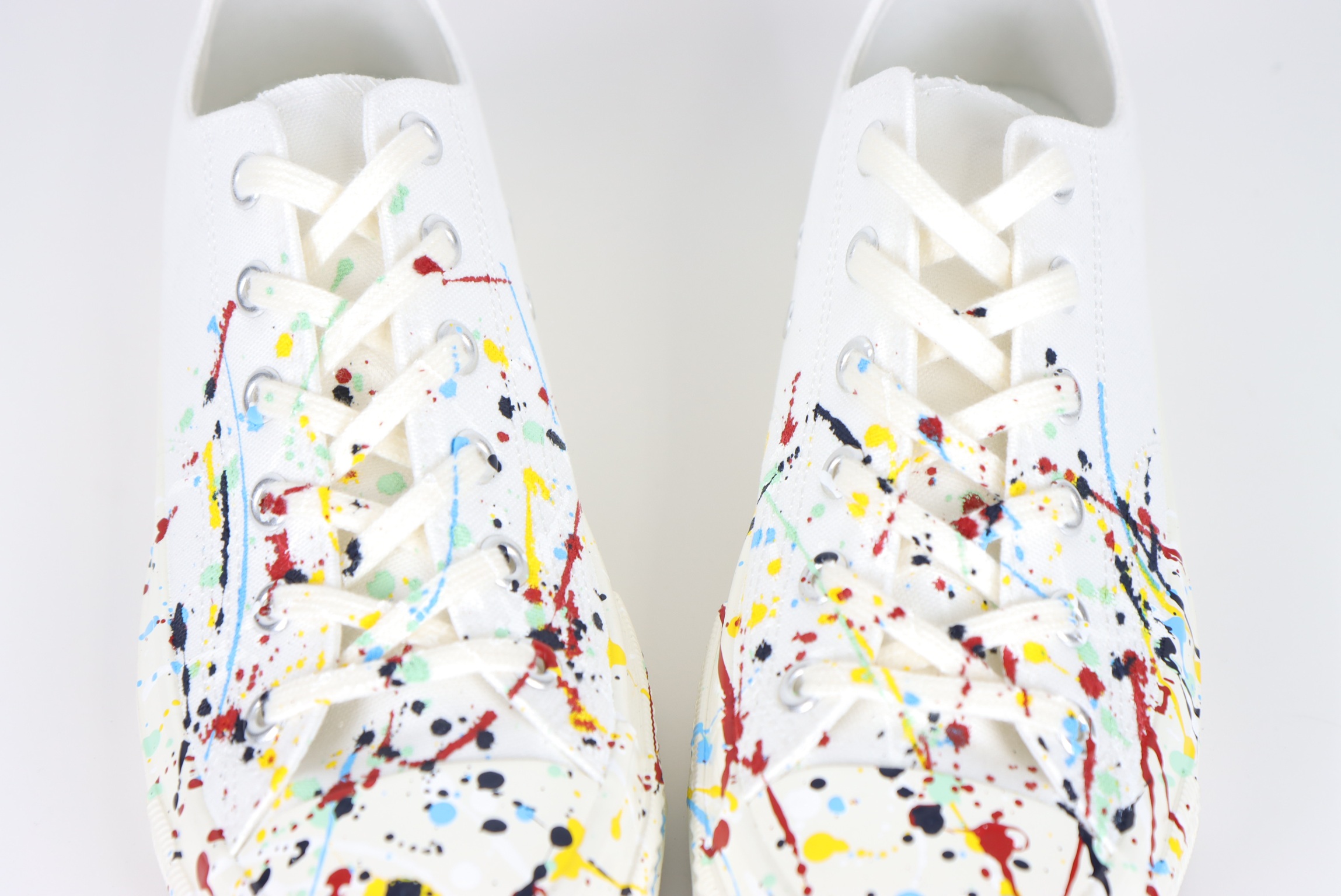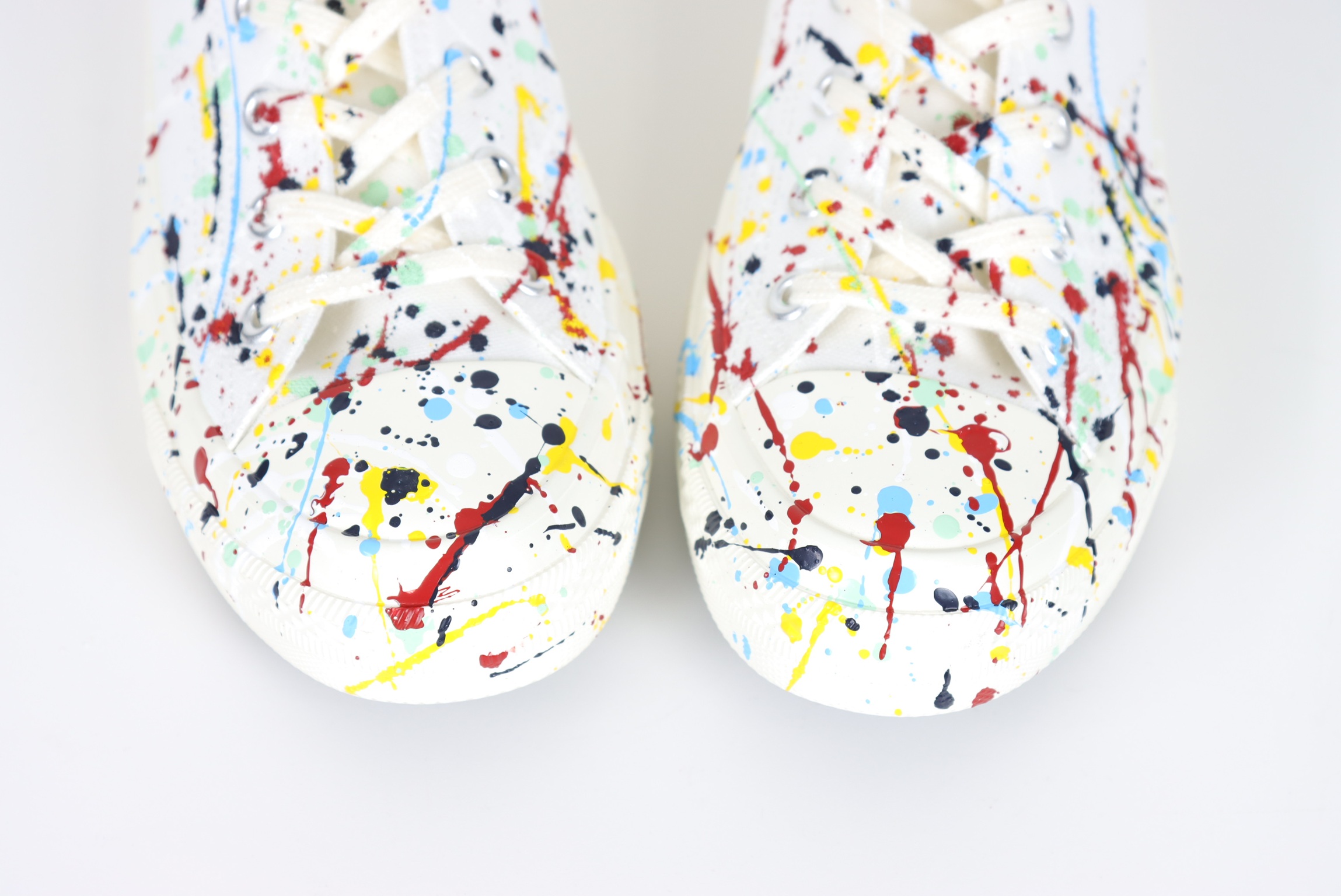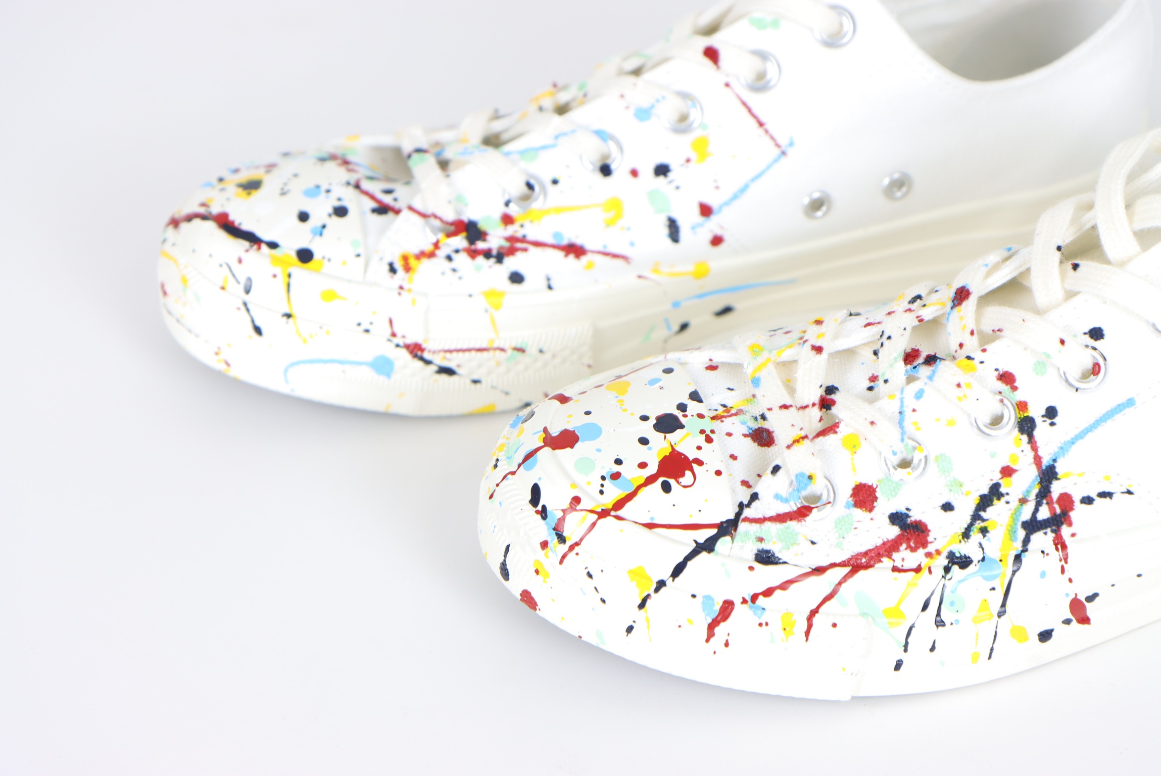 무지 화이트 로우탑 스니커즈에 액션페인팅한 제품입니다.톤이 정말 이쁘고요 완전 화이트가아닌 아이보리 계열컬러입니다.액션페인팅을 더해 유니크하고 신었을떄 정말 이쁜 제품입니다~가격저렴하게 나왔으니 많은 문의 부탁드립니다~