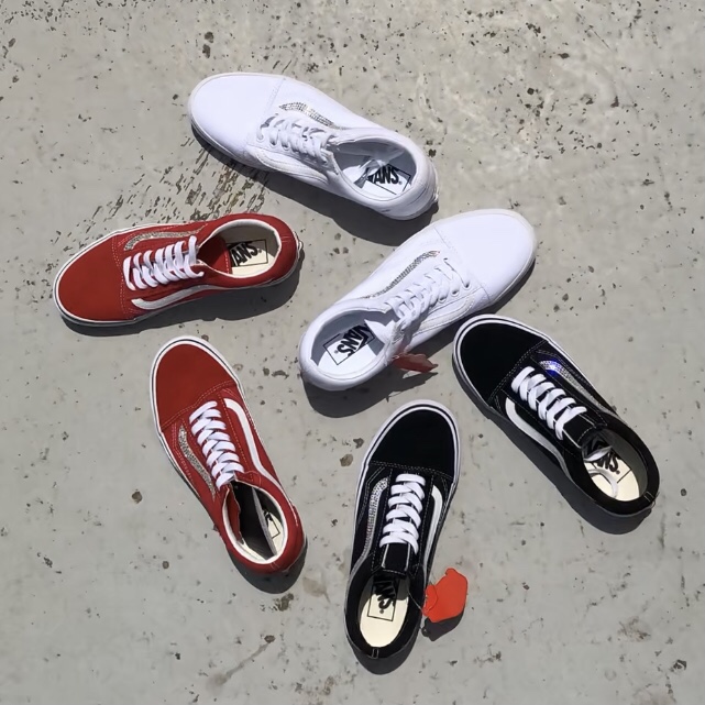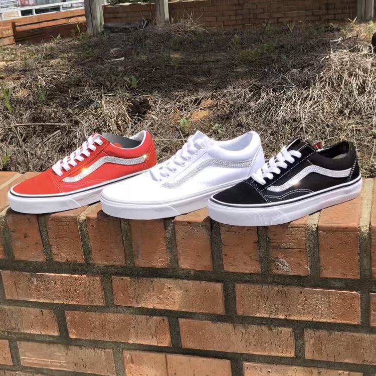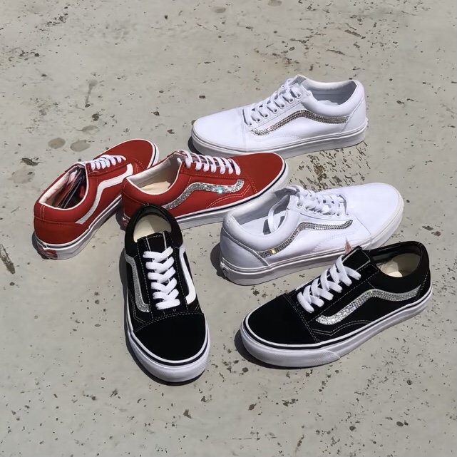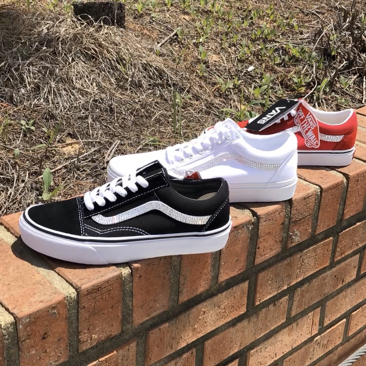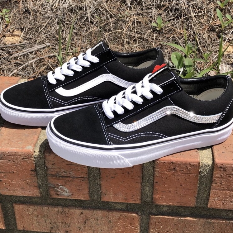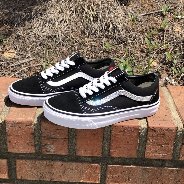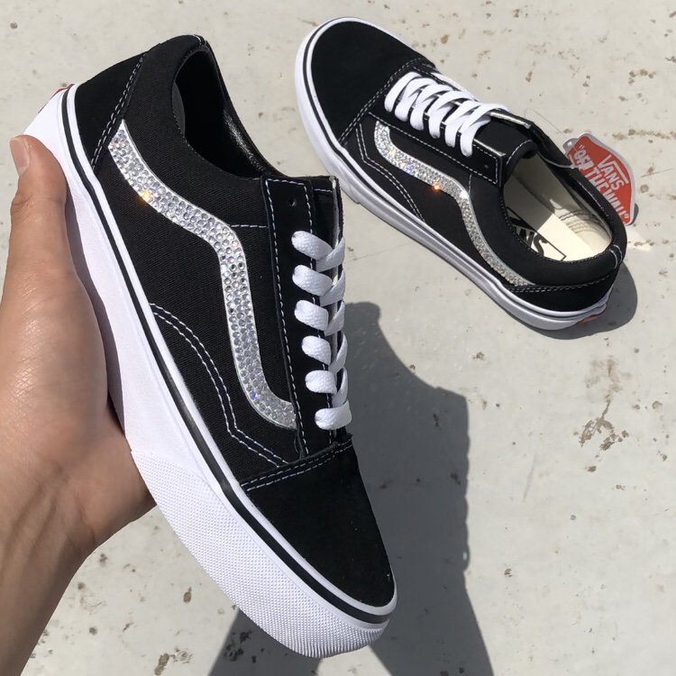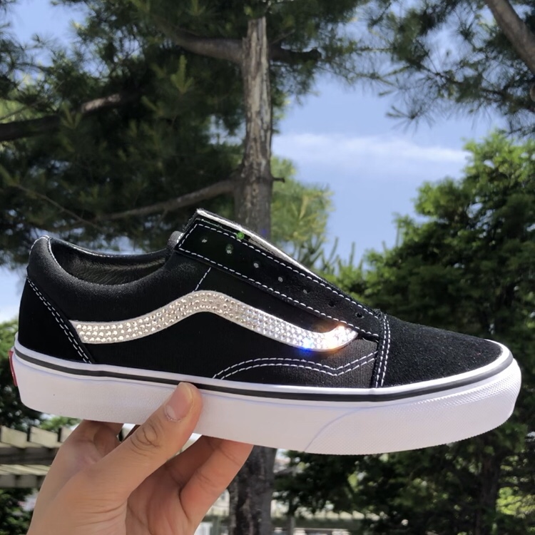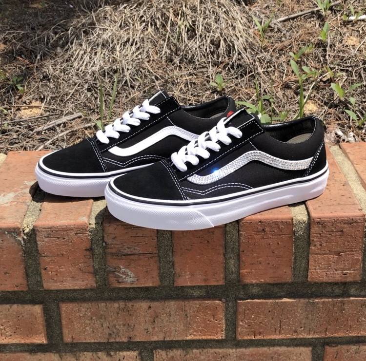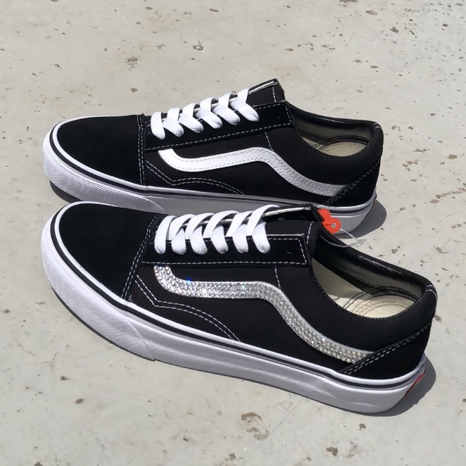 반스 올드스쿨 검흰 제품 스우시부분에 스와브로스키 작업을 진행하였습니다.