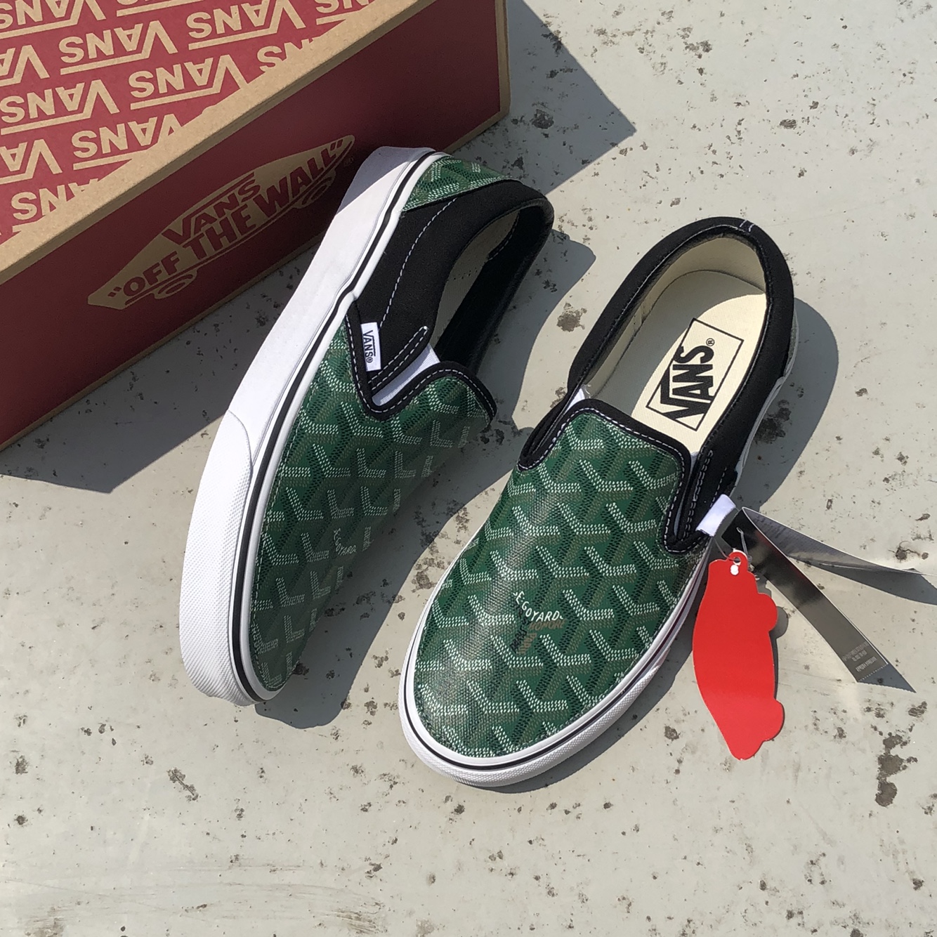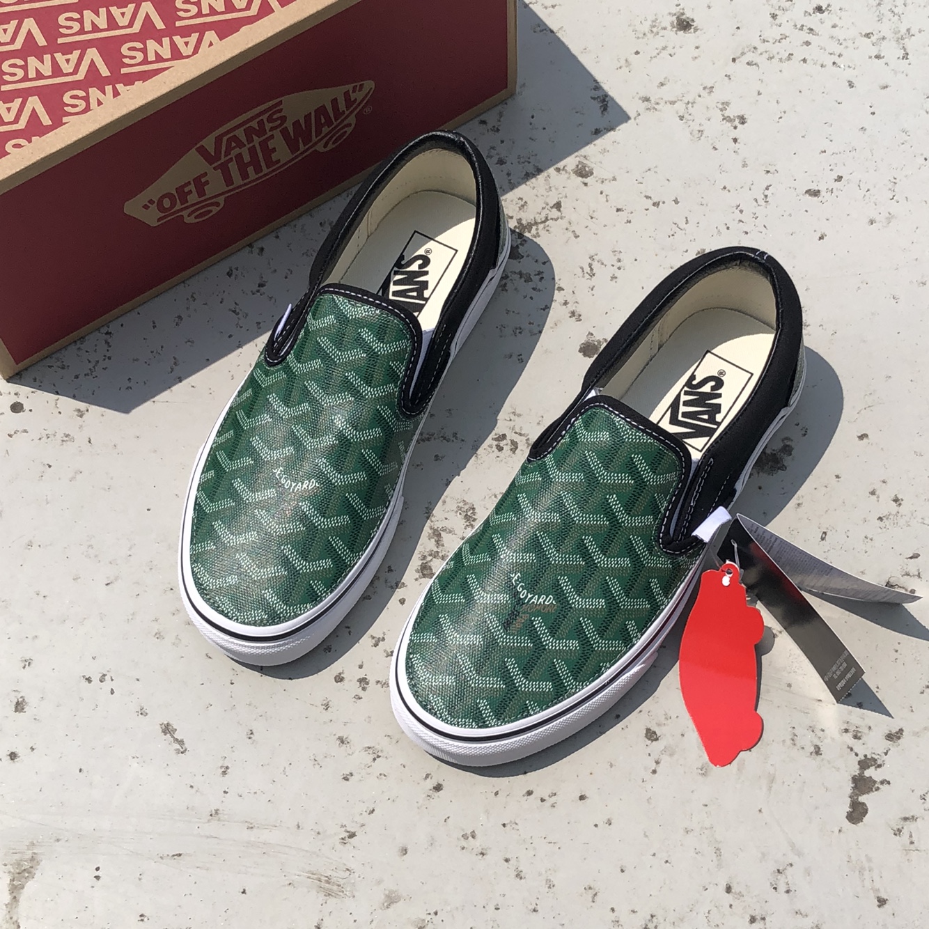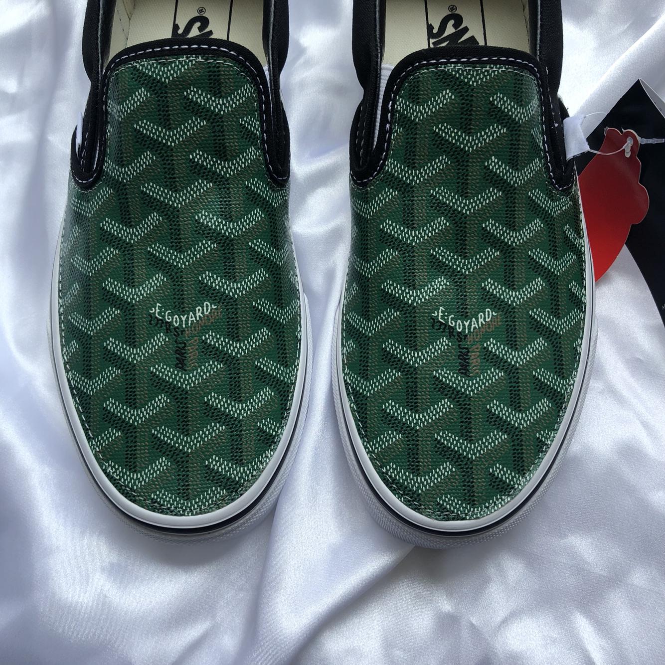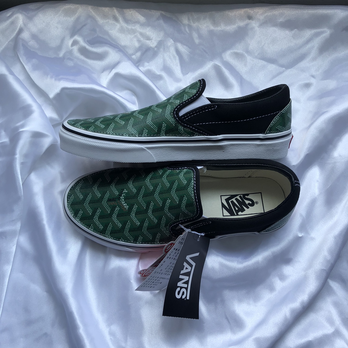 정품 반스 슬립온 검흰 고야드(그린)커스텀