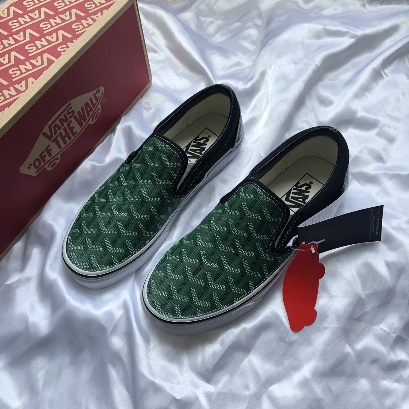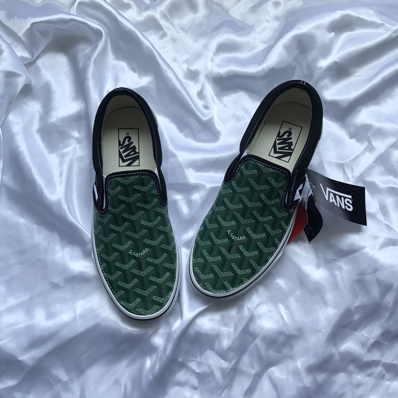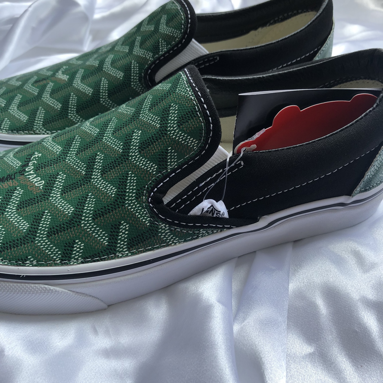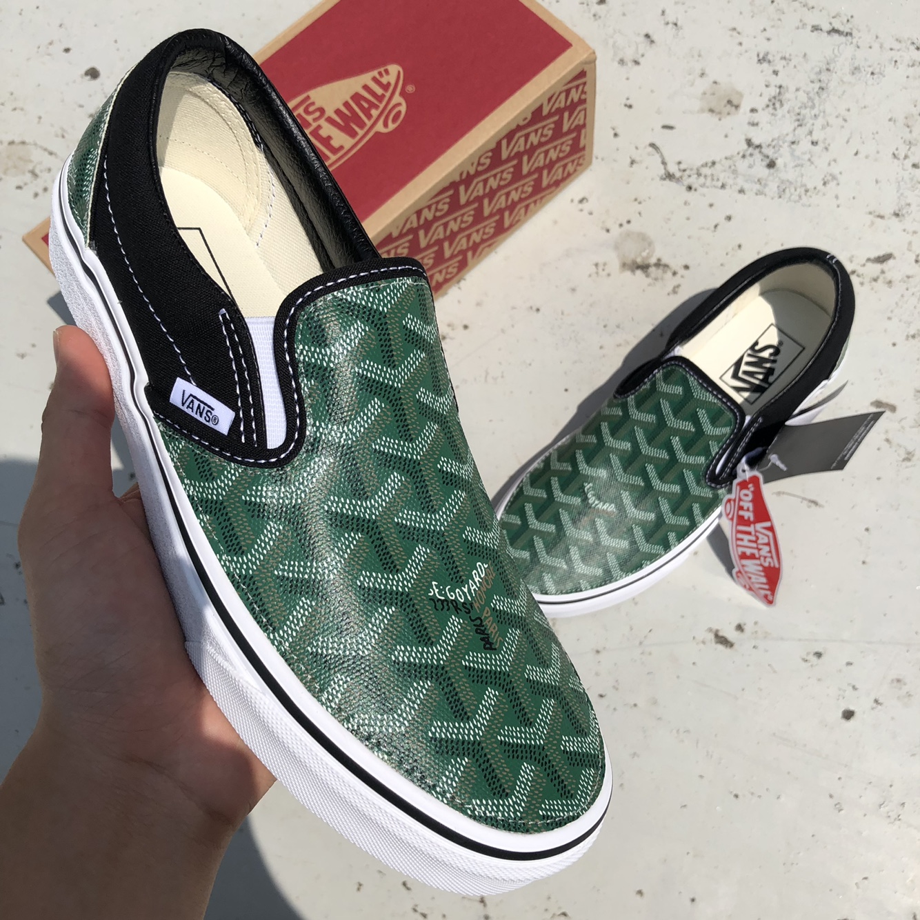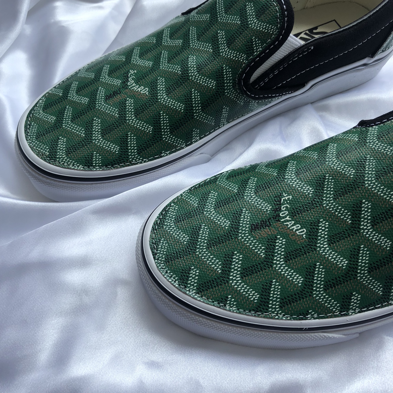 정품 반스 슬립온 검흰 고야드(그린)커스텀